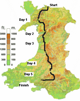 784 | 774 | Start at Conwy Castle | 624 | 500 | Nant Gwynant | 722 | 194 | Cymmer Abbey (Vanner) campsite | ||